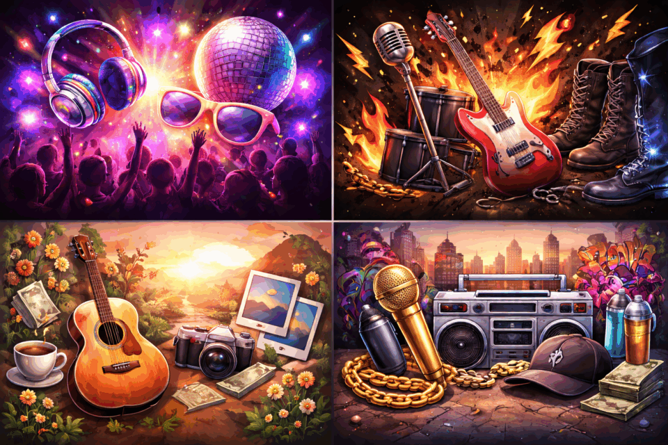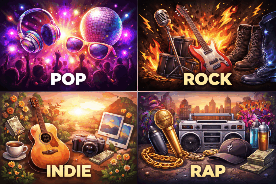I generi musicali presentati sono stati scelti in base ai tipi di musica più rappresentativi degli artisti che partecipano regolarmente al Festival di Sanremo, dove si ascoltano non solo classici della canzone italiana ma anche pop moderno, rap/urban, indie e rock.