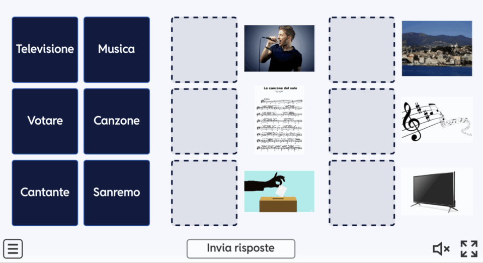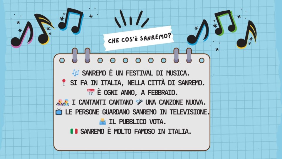 Per questo livello ho scelto di spiegare brevemente cos’è il Festival Sanremo, con la lettura di un breve testo anticipato da un’attività di matching delle parole chiave