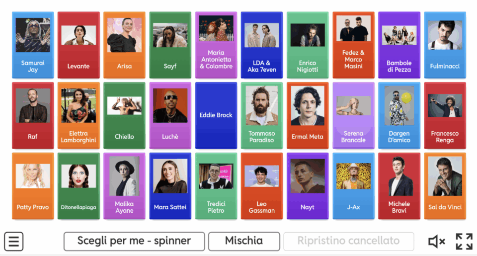 Si può continuare con un’attività da svolgere a coppie: ciascuno studente riceve un link wordwall (o una scheda cartacea) con le foto dei 30 cantanti in gara. Lo studente A ha le informazioni relative a nome, età, nazionalità e genere musicale di 15 cantanti, mentre lo studente B ha le stesse informazioni ma relative ai restanti 15 cantanti. Lo scopo è raccogliere i dati mancanti compilando una tabella, praticando così le domande “Come si chiama?” “Quanti anni ha?” e “Che genere di musica fa?”. L’insegnante può invitare gli studenti ad elicitare le prime due domande, scrivendole anche sulla lavagna se lo ritiene utile. La terza domanda, essendo inusuale in un livello A1, verrà introdotta dall’insegnante, che però potrà sfruttare l’occasione per ripassare il presente del verbo irregolare fare.
